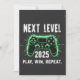 next level 2025, gaming lover, gamer humour, level up, play win repeat, video game enthusiast, funny gaming quote, new year gamers, gaming lifestyle, gaming celebration, console gamers, gaming pad design.