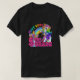 I give wanted to give this a 4 instead of a 5 because these Basic DARK T0shirts run unexpectedly SLIM or Narrow. Which is great if you do not have a potbelly, but I have a paunch. It isn't the shirt's fault that I've got a beer belly. The design and shirt itself is a quality cotton shirt. The color is more of a deep purple, but still a very pretty color. The Basic DARK T-shirts run a bit SLIMMER than the Basic Ts. The neck is a fraction narrower (or seems to be narrower) also. I'm a paunchy middle-aged woman and my neck is 12 inches (31cm) thick and the neckline fell about the same as in the photo of the man, and I had the desire to tug it a bit. So if you're a thick necked man or like loose shirts, be aware these are slimmer shirts. Once I get rid of my lockdown paunch it'll look great. The shirt washed well in cold water with no apparent bleeding. We don't have a dryer, so it hung dry. Did not shrink. Love the colors and the design. The design looks smaller on my shirt than it does on the model on-line. But still, it looks good on the shirt. The printing looks as it does on the model, just the size seems fractionally smaller. Washed garment in cold water, hung dry and design appeared unaffected.