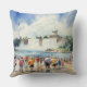 This throw pillow is decorated with a watercolor painting of a Summer day at Niagara Falls.