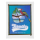 Nias Island Indonesia travel map with a parrot on a sandy beach.