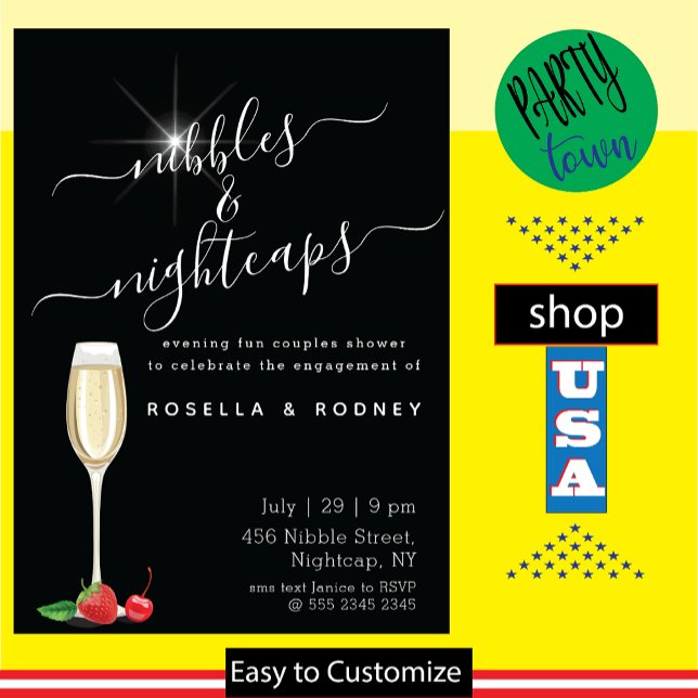 Set the mood for a cosy, classy celebration with this Nibbles and Nightcaps Couples Shower Invitation! Perfect for laid-back yet elegant gatherings, this budget-friendly invite features stylish modern fonts and minimalistic charm — ideal for a cocktail-themed couples shower, evening party, or intimate pre-wedding event.