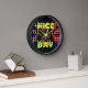 The size of the clock is dramatic and the abstract alcohol ink design is soothing and intricate at the same time. I chose the black frame that adds pop to the blue and gold design. The gold printing would be better in a slightly darker or larger font. I love it and I’m looking for just the right place in ny new apartment. I would recommend this clock for a personal gift or a present. I feel that the quality is excellent for the money! I’m a bit of a clock nut so I’m pretty particular about my purchases. The clock is larger in diameter than many if the clocks I have, so it stands out very well. I think a slightly darker printing color and a moderately larger size would best suit a professional decor or add more impact in a work place item.