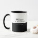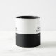 A modern and nice design for a black and white mug... to create this personalised item you just have to add your own name and text to the templates