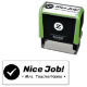 This motivating rubber stamp design features the praising message "Nice Job!" and a custom teacher's, educator's or tutor's name. It also features a decorative check mark icon. It could be used by a school teacher, educator, instructor, or tutor when marking assignments, to indicate that a student has done well.