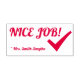 This inspiring rubber stamp design features the motivational feedback message "NICE JOB!" and a custom tutor's name. It also features a decorative check mark icon. It could be used by a school teacher, educator, or tutor when marking assignments, to indicate that a student has done well.