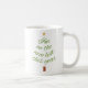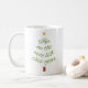 This festive white mug features a playful Christmas tree design with the text "I'm on the nice list this year" written in green script. The text is arranged in the shape of a Christmas tree, topped with a gold star and a brown trunk at the bottom. Perfect for spreading holiday cheer and showcasing your spot on Santa's nice list!