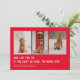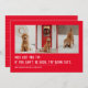 A cute and clever holiday card design to send Christmas cheer. This three-photo funny Christmas card design with white text on red is perfect for dogs, cats or anyone else trying to get on the nice list. The wording reads "Nice list pro tip: if you can't be good, try being cute." Makes a great pet holiday card!