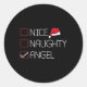 Nice Naughty Angel Christmas Pajama Funny Humour X Classic Round Sticker