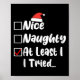Nice Naughty At Least I Tried Funny Christmas List Poster