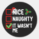 Nice Naughty It Wasn't Me Christmas List Family Classic Round Sticker