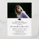 Photo on front and back... Nice, casual script graduation invitation announcement with mortarboard graduation cap icon, perfect for the high school or college grad. Modern minimalist typography, casual elegant script "Graduate" writing. Capture those special moments of growth and smiles of joy and youthfulness for all time. Upload a full portrait-mode cover photo of the graduate on front, and a landscape orientation photo als well as pertinent details of the graduation party on back. Automatically shades the perfect areas of the pic.