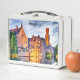 Nice white lunchbox with BRUGES, BELGIUM- Scenery with water canal in Bruges, "Venice of the North", cityscape of Flanders, Belgium.