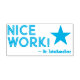 This positive rubber stamp design features the encouraging message "NICE WORK!" and a personalised educator's name. It also features a decorative star shape. It could be used by a teacher, educator, or tutor when marking assignments, to acknowledge that the student has done a great job.