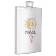 The product is a good size and came exactly as it was pictured.  The lid is not attached to the flask, which could be dangerous on drunken nights... The print came out surprisingly well and looks very sharp.  Would definitely recommend.