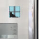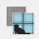 This magnet is inspired by Nicky's favourite past time: looking out the window. The pale blue background represents the early morning sky, while the dark grey lines represent windowpanes. The little doggy himself makes an appearance as well.