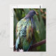 Vibrant photo of the back side of a beautiful Nicobar Pigeon bird and his colourful feathers.