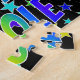 This vibrant, exciting, birthday-themed jigsaw puzzle design features the message "HAPPY BIRTHDAY, NICOLE" with the characters having a colourful rainbow spectrum inspired gradient pattern, along with a fun field of stars background pattern. A vibrant puzzle like this might be a fun way to send birthday greetings to somebody named Nicole. [~Z0000468]