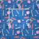 NICU nurse pattern in pink and blue on a blue background. Syringes, hearts, IV bags and bandaids.