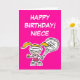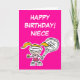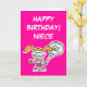 Niece birthday card with little tennis player. Tennis cartoon of little girl playing tennis. Add your own funny text like a quote, slogan, saying, joke or name.