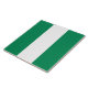 This design features the national flag of Nigeria (officially the Federal Republic of Nigeria), which is a country in West Africa. It borders Niger in the north, Chad in the northeast, Cameroon in the east and Benin in the west. Its southern coast is on the Gulf of Guinea in the Atlantic Ocean. Nigeria is a federal republic comprising 36 states and the Federal Capital Territory, where the capital, Abuja, is located. The largest city in Nigeria is Lagos.