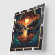 This illustration shows a solitary fisherman on a lake, surrounded by an impressive storm of glowing lightning. The scene is rendered in a dark, mystical palette of blues, teals, and fiery oranges. The bold, stylised lines give the artwork a powerful and energetic feel.