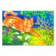 Photo Print featuring Louis Wain’s animal painting Cat Stalking (1860-1939). An orange striped cat walks a green field at night. White, purple, and red flowers are in the foreground. A wonderful gift for cat lovers and English art.