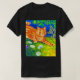 T-Shirt featuring Louis Wain’s animal painting Cat Stalking (1860-1939). An orange striped cat walks a green field at night. White, purple, and red flowers are in the foreground. A wonderful gift for cat lovers and English art.