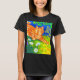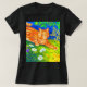 T-Shirt featuring Louis Wain’s animal painting Cat Stalking (1860-1939). An orange striped cat walks a green field at night. White, purple, and red flowers are in the foreground. A wonderful gift for cat lovers and English art.
