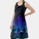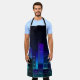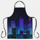 Night city panorama with neon glow on dark backgro apron