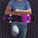 Turn heads at the park with this high-contrast electric pink vaporwave skateboard. This design features a vibrant magenta sun and neon road lines against a deep black background for maximum visual pop. This deck is designed for those who love the high-energy, neon-soaked vibes of the 80s Retrowave scene.