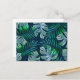 Watercolor tropics palms and monstera leaves on a navy blue background.