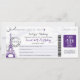 A Vintage Paris France Boarding Pass for a SWEET SIXTEENTH BIRTHDA. Flourish Designs with Eiffel Tower. Colours are White and Purple. If the colour scheme is not what you wanted please let me know and I'll recreate that for you. paula@labellarue.com Please make sure you proof your design before submitting your order. If you have questions regarding the design please let me know and I'll be happy to assist you regarding the design. Thank you!