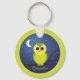 A cute little green owl sits perched on a branch under the moonlight. The stars have come out behind the owl to make this a fun keychain for anyone into owls. Add a name or other message below. Available in alternate colours with matching products.