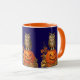 NIGHT OWL ON HALLOWEEN PUMPKIN AND AUTUMN LEAVES MUG