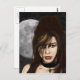 A digital painting of a female vampire with a full moon behind her, in a night time portrait.