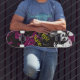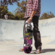 A sweet design of a vampire with a purple theme and a full moon with bats. A slightly anime style realistic cartoon with a night time feel. The words "Night Skater" can be edited so you can change the font, text, colour and size to personalise it the way you want. You can transfer the image onto another type of skateboard or even upload your own image or photo. Generative content.