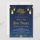 Invite your guests to a beautiful evening of reflection and community with this stunning Iftar invitation. The design features a majestic navy blue mosque silhouette set against a deep night sky, adorned with glowing golden lanterns, stars, and crescent moons. This atmospheric and elegant card is perfect for Ramadan dinner parties, community Iftar events, or Eid Al-Fitr celebrations.