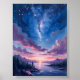 Night Sky | Starry Lake Purple Watercolor Poster