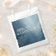 Elements: watercolor background, serif and san serif fonts. Colours: blue, white, silver, navy. Themes: space, stars, night, a night under the stars, written in the stars, heavenly, celestial, modern, contemporary, evening wedding, outdoor wedding. Collection: Night Sky Stars Navy Blue White Wedding Suite. Product Type: Favour Bag