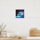 Night Sky with Giant Wave Drawing Blue Poster
