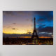 Night to Day transition over Eiffel tower in winter from Trocadero on a cloudy day - Paris, France.