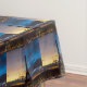 I am very pleased with this purchase. The quality is good, it is heavy and the image decorating it is brilliant and very eye-catching. When I first laid eyes on this tablecloth, still folded and in the transparent covering, it brought a smile to my face and I knew right away it was a good choice. A few days later my wife replaced our old tablecloth with this little gem and was quite satisfied. She noted that it is thick and fits the table very well with just enough hang over (although our dining table is extended by a traditional leaf which we keep in place even if we are not having guests over) and stays put instead of blowing all over the place. The image decorating this tablecloth is brilliant and very eye-catching. It looks even better than it appeared online.