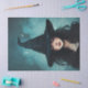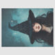 Beautiful digital illustration of a young witch with black hair and wearing a witch's hat. The watercolor background is lightly filled with stars. Add a touch of magical whimsy when decoupaging furniture or other craft projects.