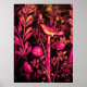 NIGHTINGALE WITH ROSES, Pink Fuchsia Black Yellow Poster