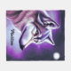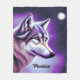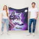 This is a beautiful fleece blanket for a wolf lover featuring an illustration of a mystical wolf face in profile with white and shades of purple and blue. The name on the blanket is customisable with the name of the recipient.
