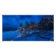 Nighttime winter scene with snow covered pines poster