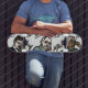 Skateboard with illustration of Nikola Tesla, Edgar Cayce and Jiddu Krishnamurti