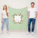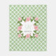 Personalise this chic nile green and white quatrefoil pattern fleece blanket embellished with a romantic soft pink rose floral monogram you can personalise with your initial and name. Choose from 3 sizes.