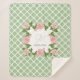 Personalise this chic nile green and white quatrefoil pattern sherpa blanket embellished with a romantic soft pink rose floral monogram you can personalise with your initial and name. Choose from 3 sizes.