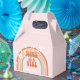 Retro inspired Nine is a Vibe 9th birthday party favour box with hippie style rainbow, daisies and boho fonts and colours.